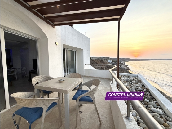 Este departamento se alquila totalmente amoblado, listo para habitar, con acceso directo a la playa y una vista privilegiada frente al mar en una de las urbanizaciones más exclusivas y completas de Manta.